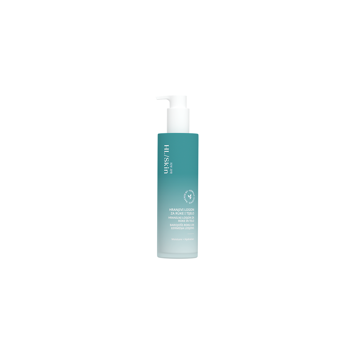 Razmazite svoju kožu HL/Skin Hrajivim losionom za ruke i tijelo, laganom formulom koja se brzo upija i utemeljena je na naprednoj korejskoj znanosti.